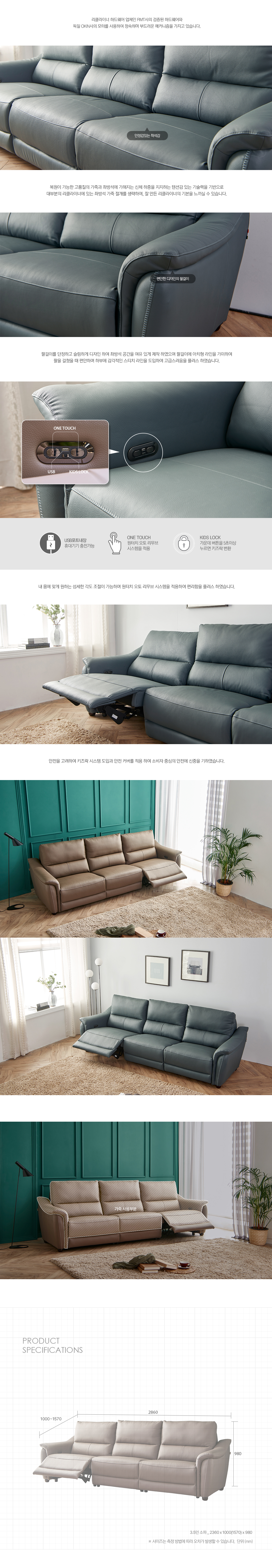 3.5인 전동 리클라이너 : 2360X1000(1570)X980