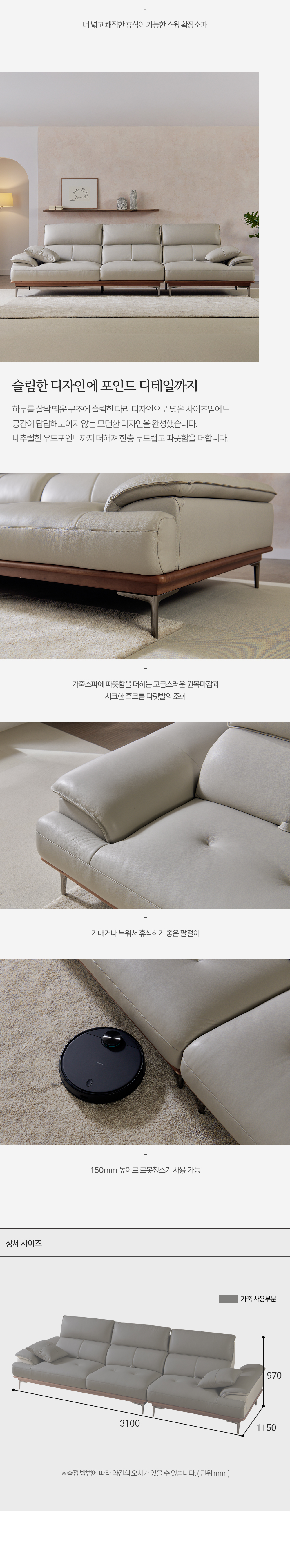 4인 소파 : 3100 x 1150 x 970mm