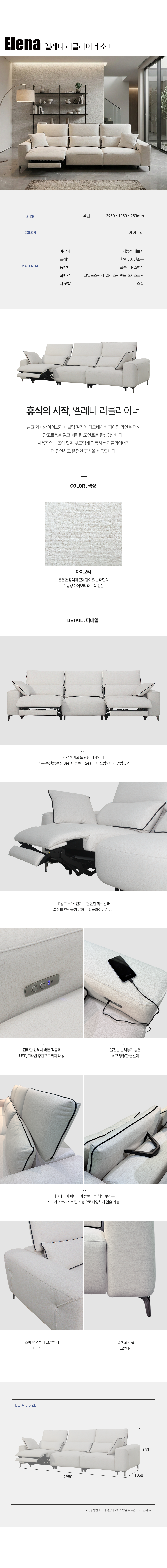 4인 소파 : 2950 x 1050 x 950mm