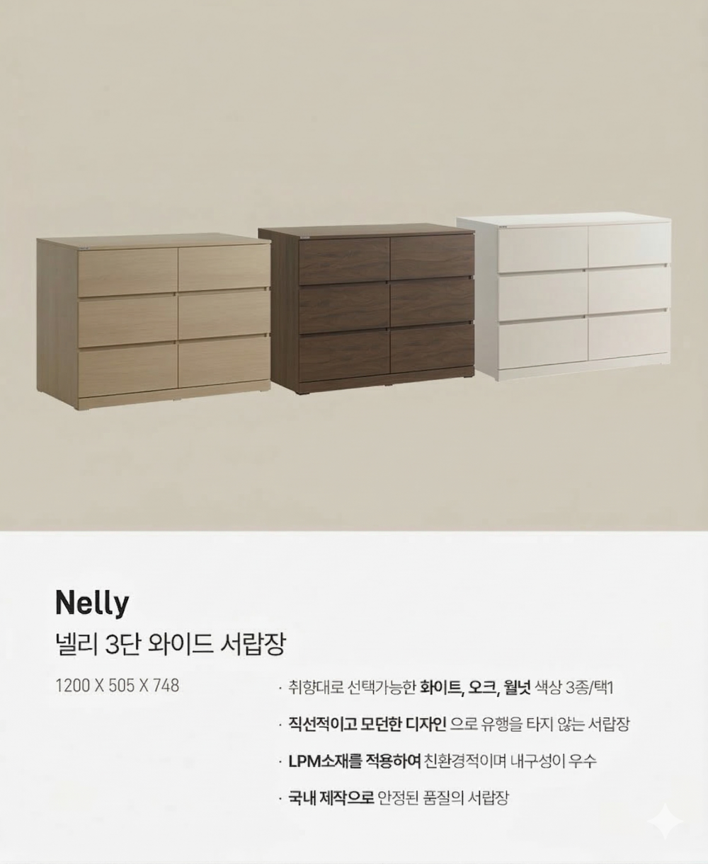넬리 3단 와이드 서랍장